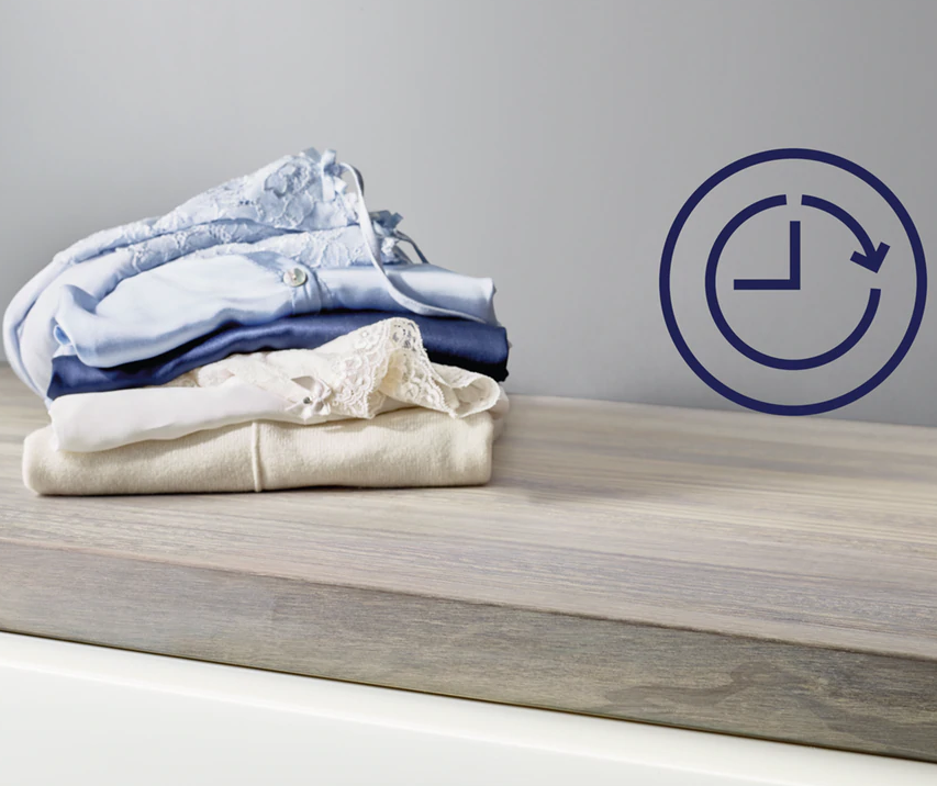 Познакомьтесь с опцией "Экономия времени": тщательная стирка в более короткий срок. Нажатие кнопки ускоряет основной цикл машины до 50%. И хлопок, и синтетика будут полностью выстираны — причем вдвое быстрее.