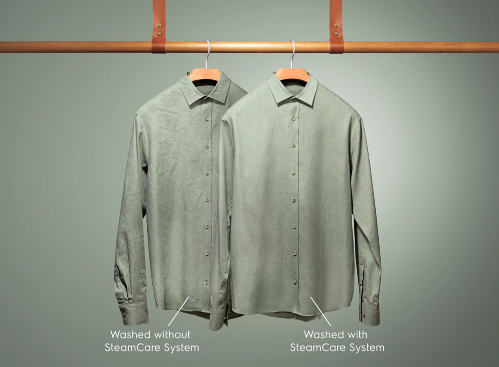 Благодаря системе SteamCare на вынимаемом из барабана белье меньше складок. Добавляемый в конце стирки пар убирает напряжение внутри волокон и уменьшает число складок на треть. Не подвергаясь нагреву от утюга, одежда выглядит лучше и служит дольше.