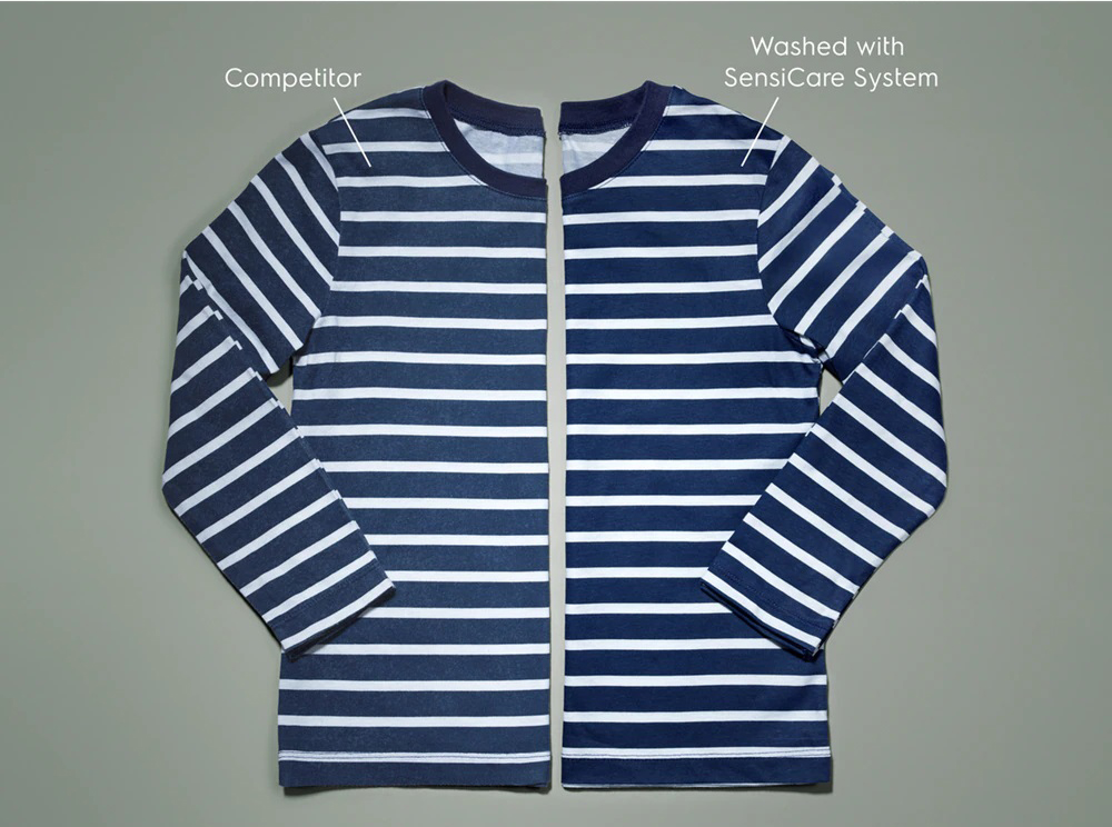 Система SensiCare взвешивает каждую загрузку белья и корректирует цикл, точно выбирая длительность стирки. Это позволяет избежать перестирывания и помогает вещам сохранить вид и форму.