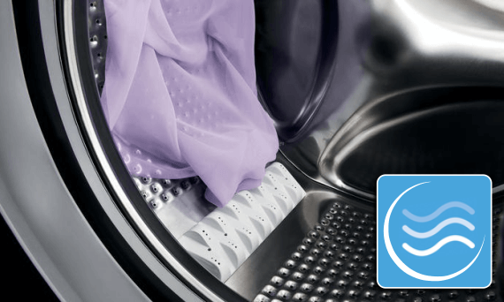 Стиральная машина выполняет обороты, равномерно распределяя вещи внутри барабана, вследствие этого стиральное средство проникает глубже в волокна ткани и более эффективно устраняет загрязнения.
