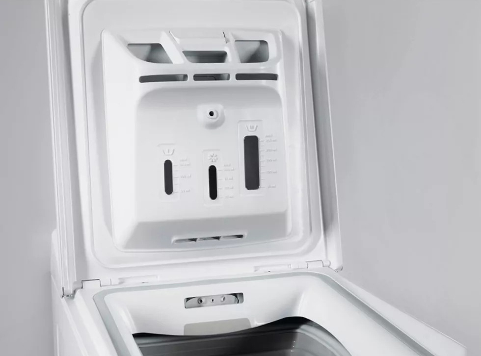Большие отсеки дозаторов, упрощают контроль количества добавляемого моющего средства.
