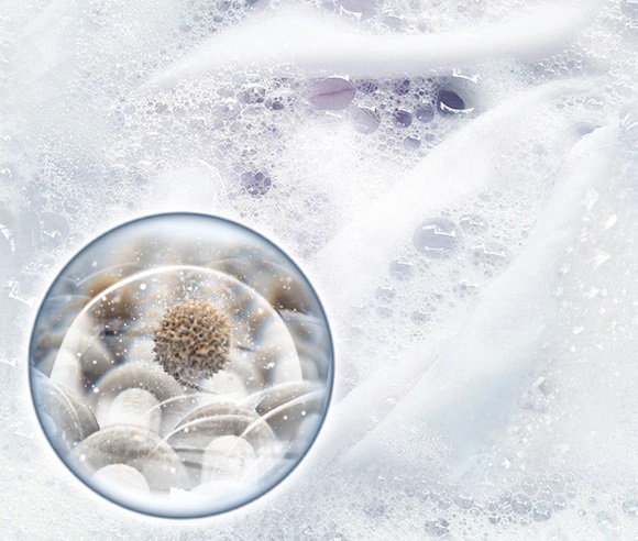 Функция Bubble Soak позволяет удалять разные виды устойчивых пятен нажатием одной кнопки. Одежда тщательно замачивается в активных пузырьках и эффективнее пропитывается раствором, поэтому любые загрязнения и пятна разрушаются и удаляются гораздо эффективнее*.