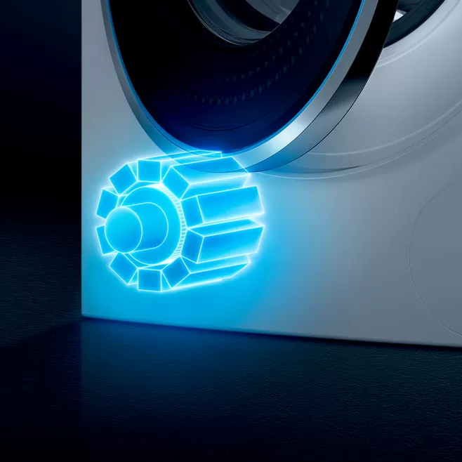 Со временем углеродные щетки в двигателях стиральных машин изнашиваются, это означает, что скоро двигатель стиральной машины выйдет из строя, но бесщеточный мотор iQdrive тихий и практически не изнашивается.