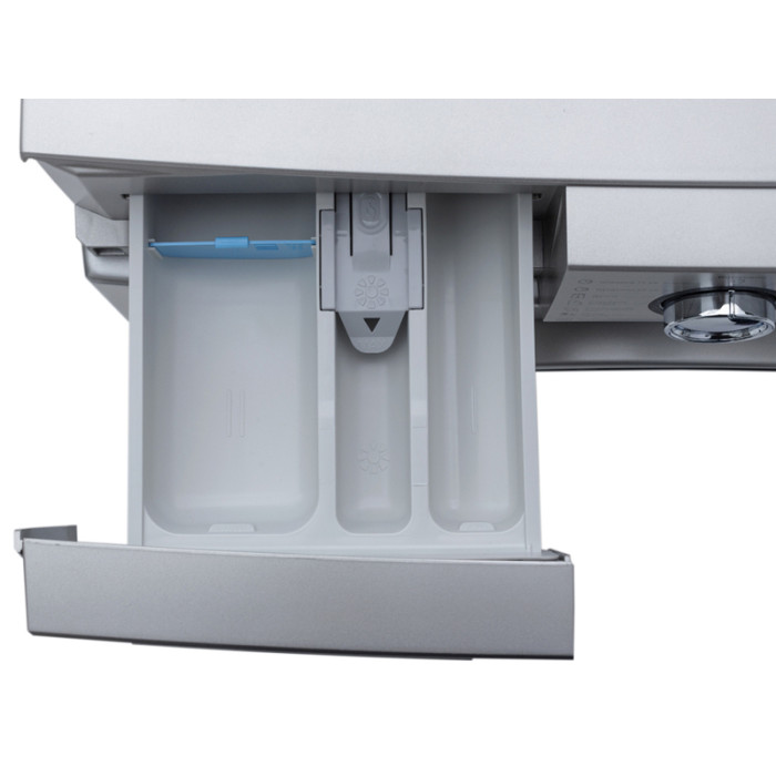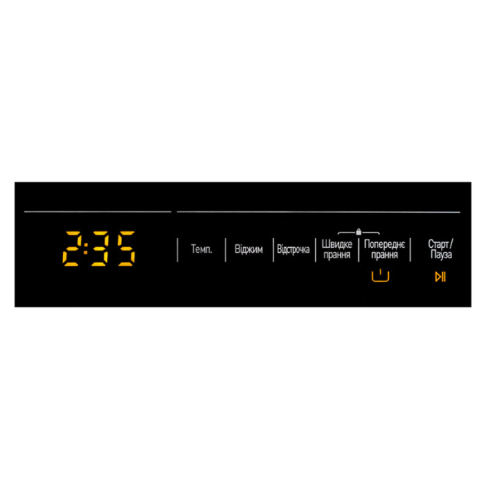 Для управления у стиральной машины предусмотрена панель с цифровым дисплеем и сенсорными кнопками, а также вращающийся регулятор для выбора режимов. Поэтому настроить технику можно в несколько движений.