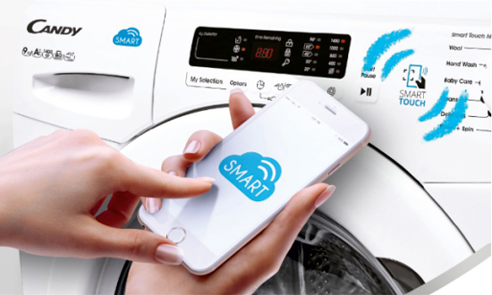 Итальянский производитель техники, шагая в ногу со временем, оборудовал современные стиральные машины приятными добавлениями. Стиральная машина Candy Smart обладает возможностью мобильной диагностики и управления стиркой при помощи мобильного устройства через технологию NFC. Сейчас при помощи NFC и Wi-Fi смартфон превращается в удобный пульт управления машиной: при помощи приложения пользователь может запускать цикл стирки, останавливать его, настраивать отдельные параметры и видеть, когда стирка закончится.