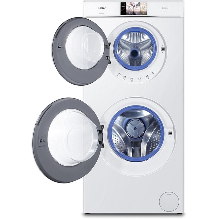 Стирально-сушильная машина HWD120-B1558U с двумя барабанами вмещает до 12 кг. Нижний барабан имеет функцию сушки белья до 4 кг. Преимущества модели: инверторный мотор с прямым приводом Direct Motion, который позволяет повысить долговечность машины за счет снижения износа подвижных деталей, при этом уровень шума и вибраций понижаются; цветной сенсорный дисплей; барабан Pillow, обладающий выступами в форме подушечек на внутренней поверхности, что обеспечивает максимально бережное отношение даже к самым деликатным тканям. Специальная антибактериальная обработка исключает возможность образования микробов, плесени и грибка на манжете люка и в лотке для порошка. А самая надёжная на данный момент система защиты от протечек AQUASTOP позволит вам не беспокоиться, пока стиральная машина работает в ваше отсутствие или ночью.