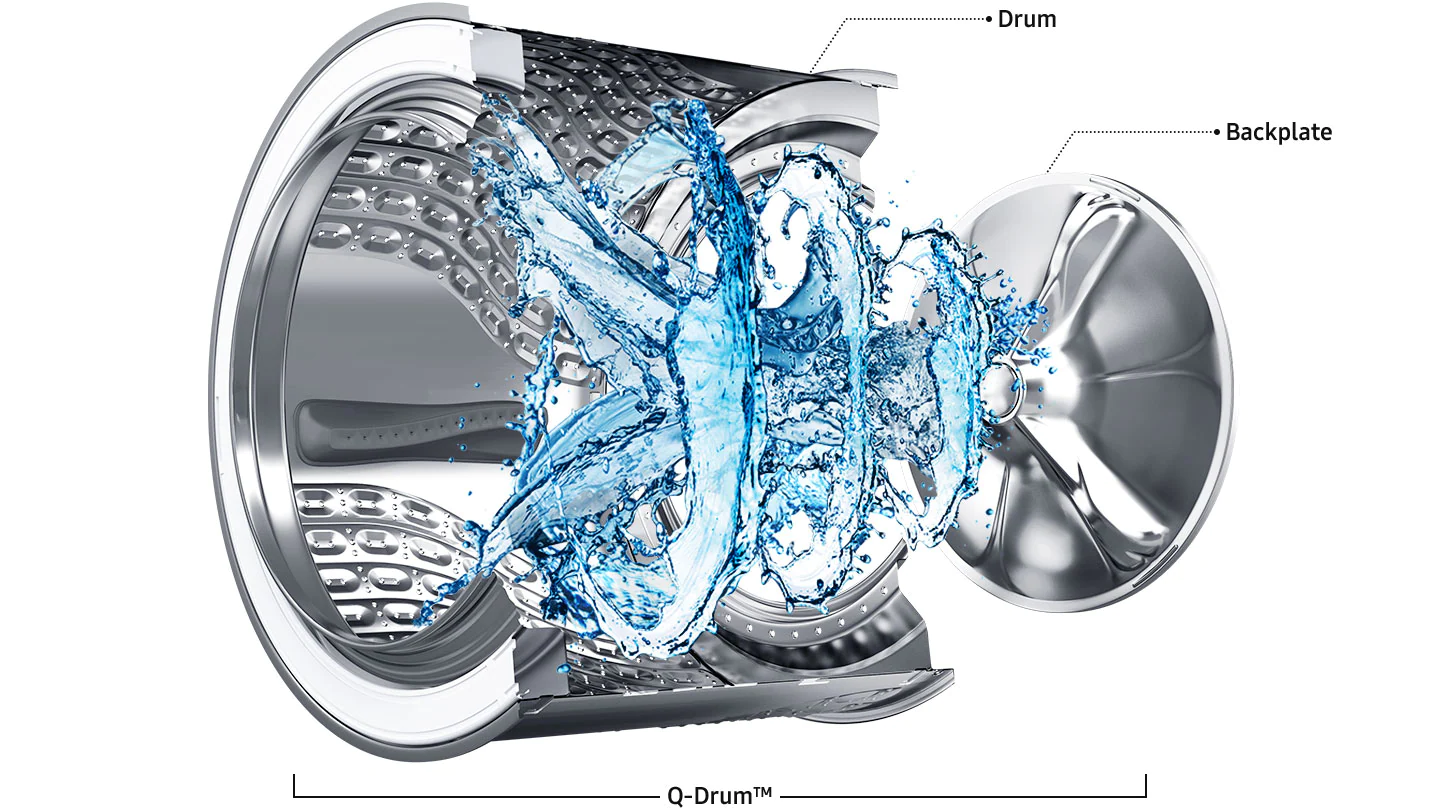 Технология QuickDrive ™ сокращает время стирки до 50% и энергопотребления до 20%, в то же время качество стирки не ухудшается. Благодаря использованию функции Q-Drum ™ с основным барабаном и задней пластиной, которые вращаются независимо, обеспечивается динамичное движение одежды с удвоенной силой. Благодаря этому стирки становится быстрее, эффективнее и деликатнее.