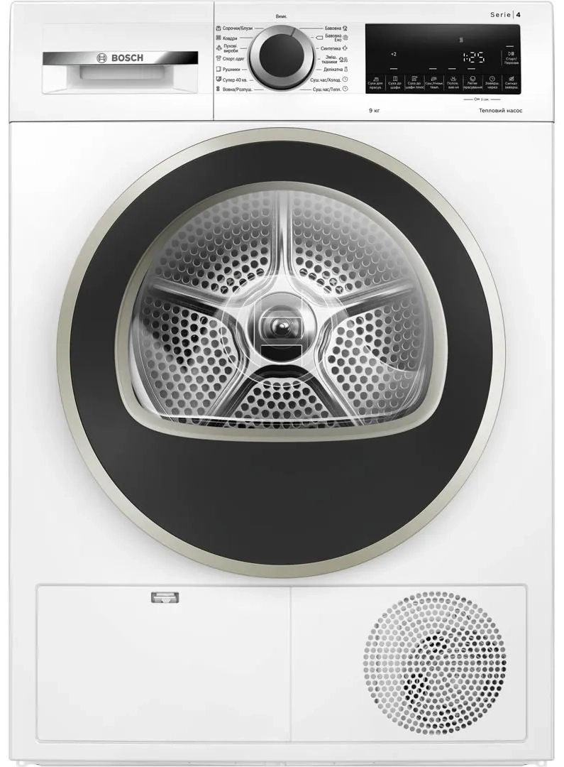 Просторный барабан сушильной машины Bosch WQG14200UA, с вместимостью до 9 кг, дает возможность с комфортом сушить самые разные вещи. Вы сможете без труда высушить как мелкое белье, так и крупные предметы, такие как подушки или одеяла. Это идеальное решение для семей, нуждающихся в большом объеме сушки за один цикл.