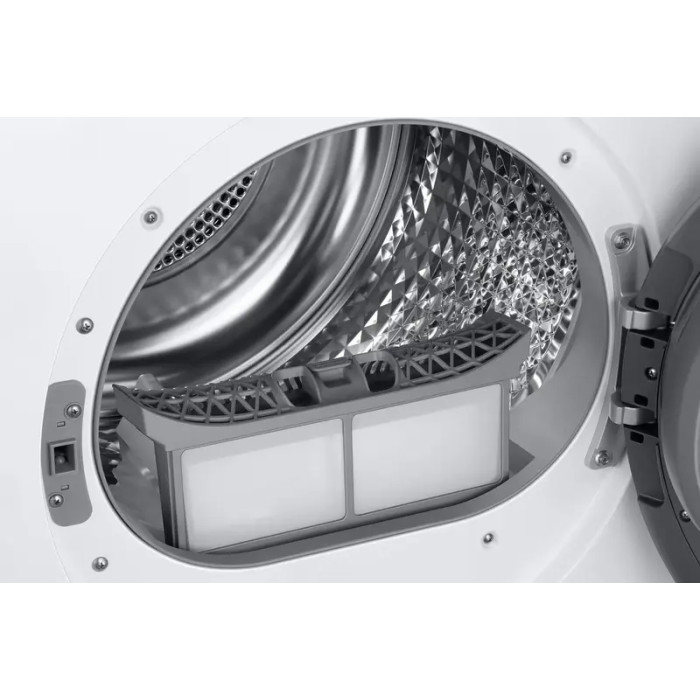 Подсветка барабана; Степень сушки: 3 уровня; Хладагент (Загрузка, t CO2e, Герметичная упаковка): 0.6149; Перенавешиваемая дверца; Smart Things; Предотвращение образования складок; Хладагент (Загрузка): 430 г; Функция Smart Control; AI Control; Сушильный рэк; Блокировка управления; Тип хладагента: R134 (GWP=1,430); Годовое электропотребление: 194 кВт/год