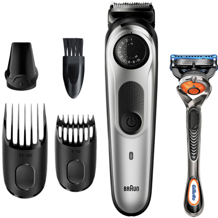 Триммер для бороды BT5260 с колесом регулировки длины, 3 дополнительными принадлежностями и бритвой Gillette Fusion5 ProGlide.
