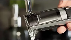 Чтобы очистить триммер для бороды, просто промойте его под струей воды.