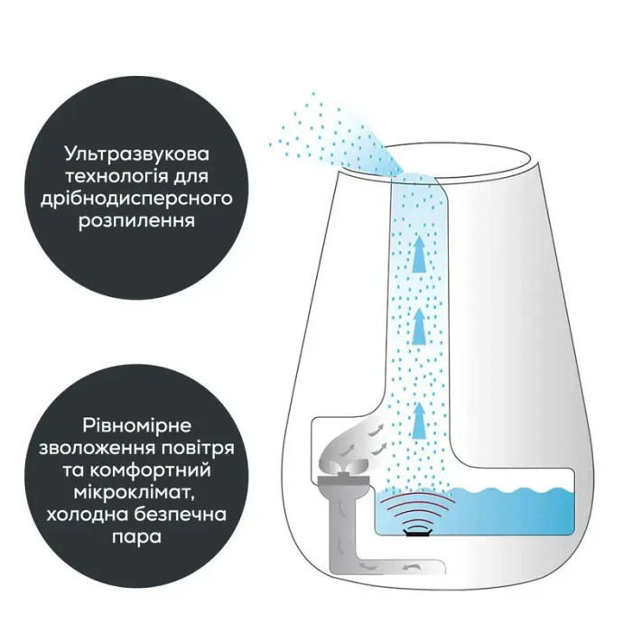 - Ультразвуковая технология увлажнения с низким уровнем шума и экономичным энергопотреблением