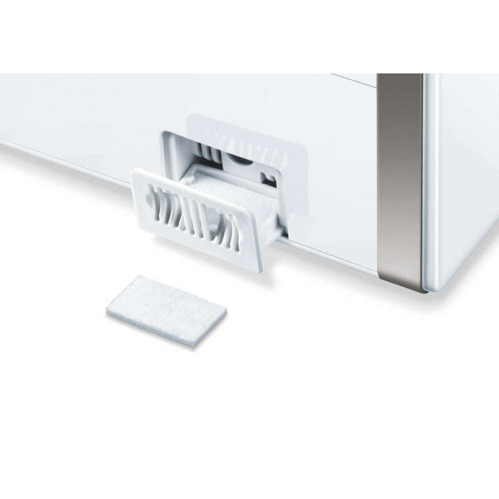 Beurer LB 88 увлажняет воздух особо гигиеничным способом. Благодаря 3 уровням нагрева воды обеспечивается ее дополнительная дезинфекция, поэтому вы можете быть уверены, что в воздух не попадут опасные бактерии. Кроме того, вы можете регулировать не только степень нагрева, но и желаемый уровень испарения. Просто поверните регулятор и установите оптимальную для вас интенсивность.