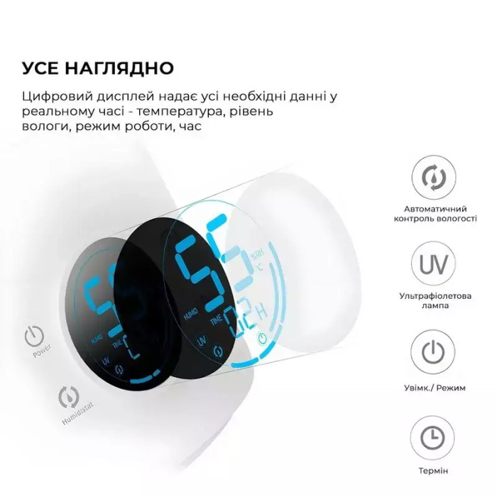 DEM-F628S UV способен отслеживать влажность и температуру окружающей среды. Умные алгоритмы устройства, обеспечивает поддержку оптимального диапазона уровня влажности и прекращает процесс увлажнения, когда этот оптимальный показатель достигнут.