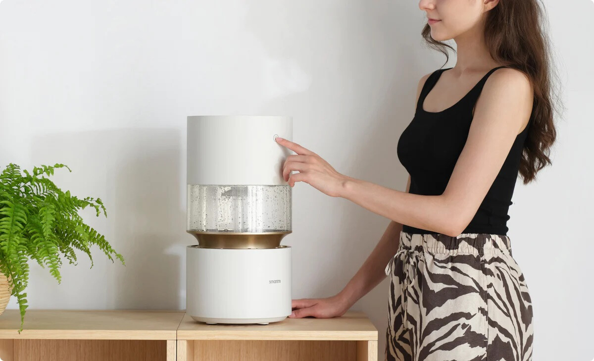 В SmartMi Humidifier Rainforest используется технология естественного увлажнения без оседания водяной дымки на поверхностях: в помещение попадает чистый воздух, по качеству увлажнения сопоставимый с воздухом в лесу после дождя. При работе увлажнителя образуется насыщенная влагой зона, через которую проходит поток воздуха, который затем попадает в помещение, распространяя приятную влагу во все части комнаты. Так достигается естественное и равномерное увлажнение в доме.