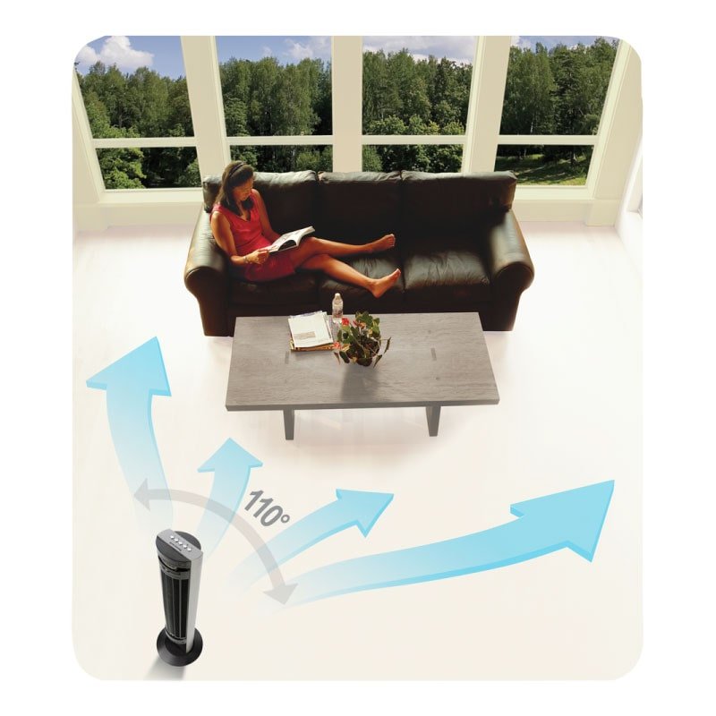 Honeywell HO-5500RE – это вентилятор-колонна, который эффективно уменьшает температуру в зоне его действия. Широкий угол вращения на 110 градусов обеспечивает равномерное распространение холодного воздуха в заданном направлении.