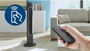Сенсорная панель управления и эргономичный пульт ДУ помогут вам с комфортом управлять этим колонным вентилятором в любой комнате.