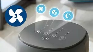 Полностью настраивайте работу вентилятора согласно своим предпочтениям, будь то освежающий ветерок или более мощный поток воздуха, используя 3 режима скорости. Три универсальных режима (Обычный, Имитация ветра и Тихий ночной) позволят настроить прибор для создания максимально комфортной обстановки.