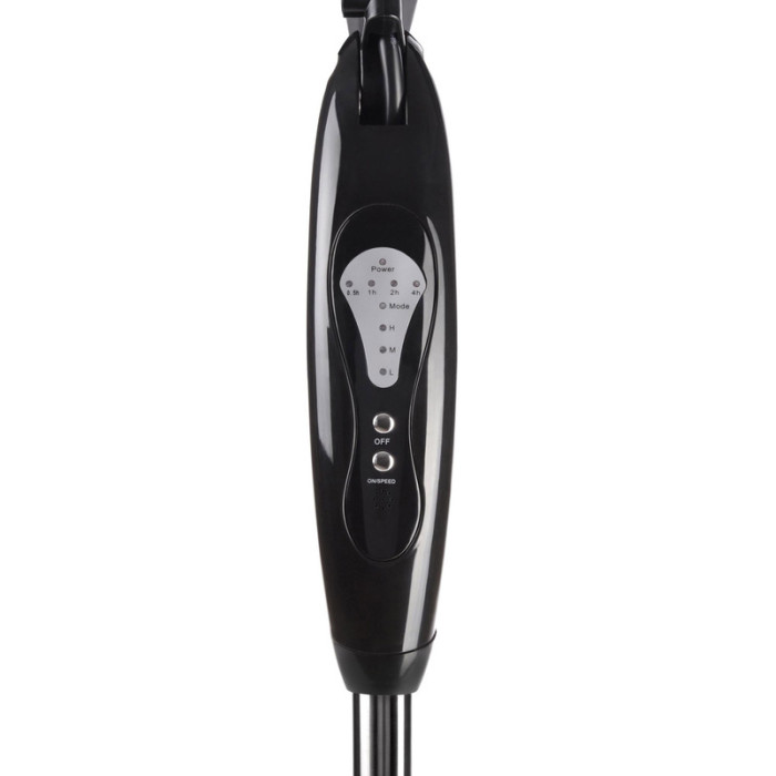 Вы всегда можете задать нужное вам положение вентилятора за счет регулируемой по высоте подставки (от 110 см до 125 см) и возможности наклонять его основную часть в пределах 90 градусов, чтобы поток воздуха был направлен туда, куда вам нужно. Кроме того, пользователь в любой момент может сменить текущие настройки при помощи двух механических клавиш на корпусе устройства или пульта дистанционного управления с четырьмя кнопками. Все максимально просто и удобно.