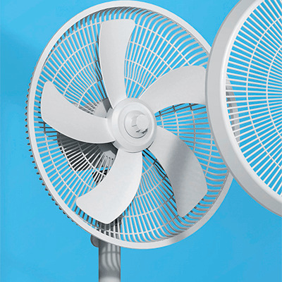 Вентилятор имеет 5 лопастей и защитную сетку на корпусе.