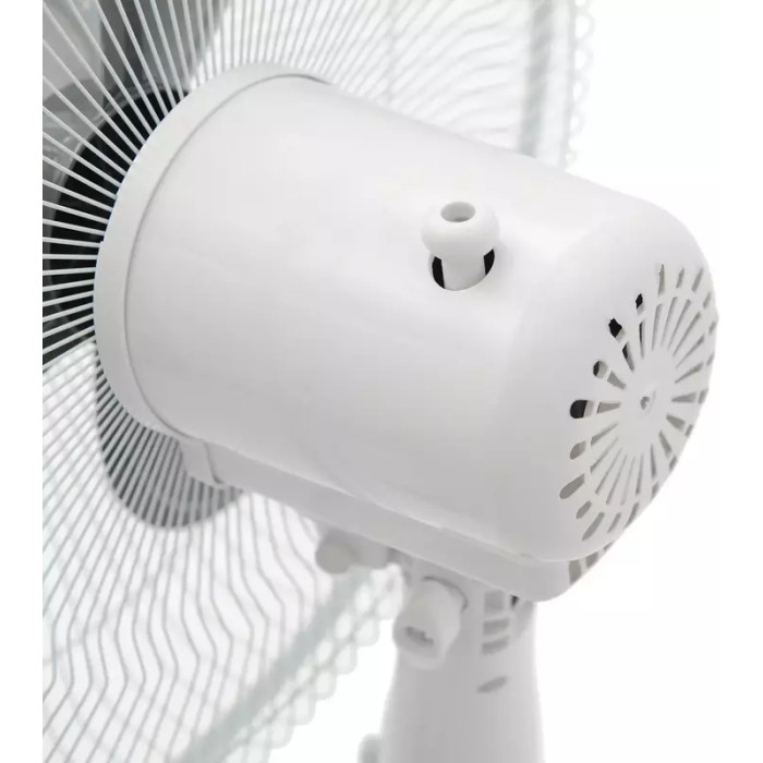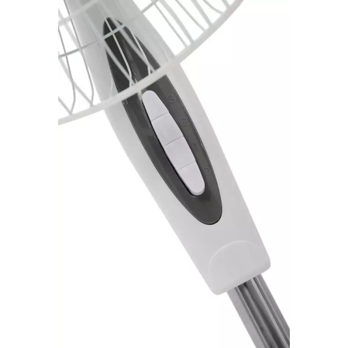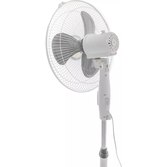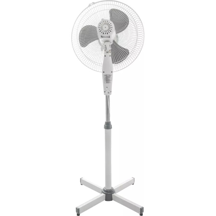 Устройство выполнено в бело-сером цвете, идеально подходящий под любую мебель и дополняющий, но не выделяющийся из всего дизайна. Обладает мощностью 40 Вт, что являетесь достаточным для охлаждения комнаты площадью до 15 кв.м. 3 лопасти с широкой площадью контакта позволяют охлаждать воздух быстрее и эффективнее. Управление осуществляется с помощью кнопок, механическим способом. Диаметр вентилятора составляет 40 см, а высота 130 см. При этом вы можете отрегулировать высоту на необходимую именно Вам.