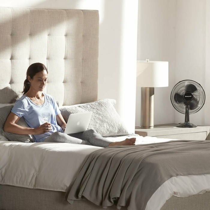 Вентилятор Honeywell способен эффективно охлаждать воздух вдоль его потока. Вы можете наклонять основание в пределах 30 градусов, а широкий угол вращения 90 градусов позволяет наслаждаться мощной работой устройства из любой точки помещения.