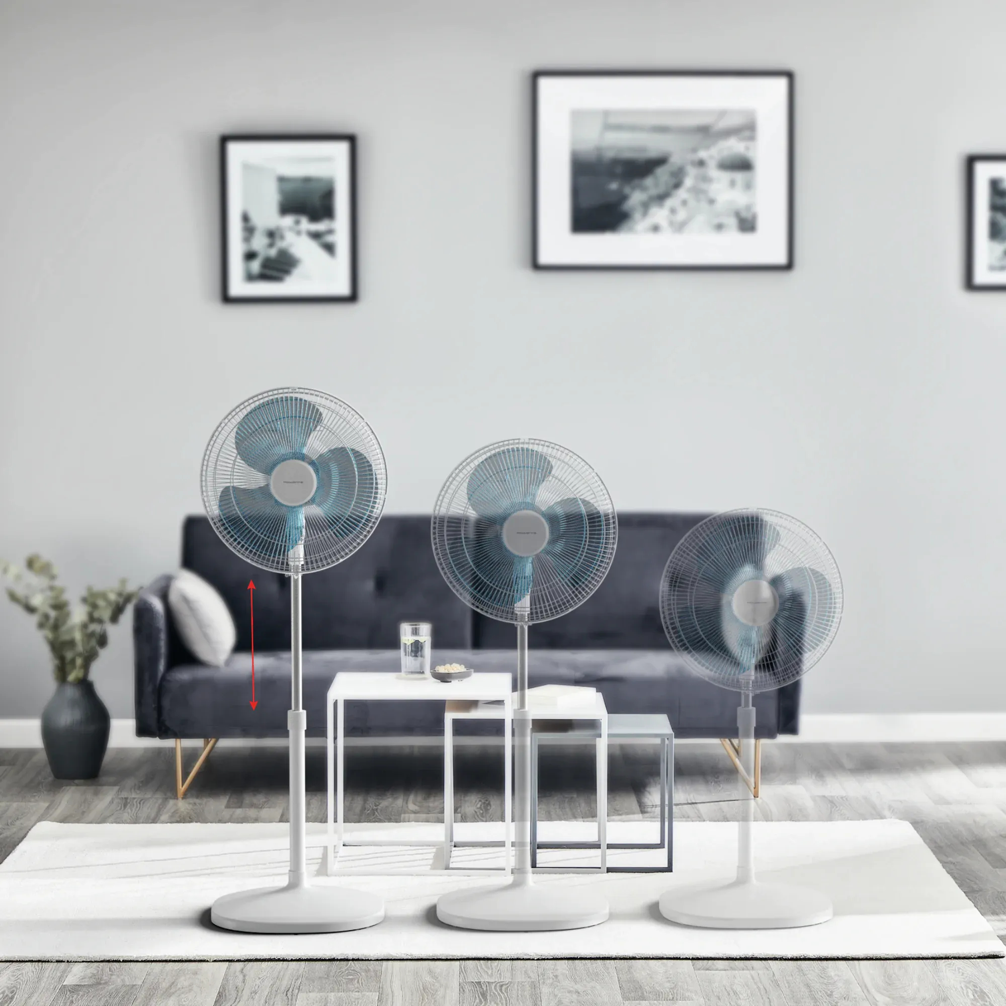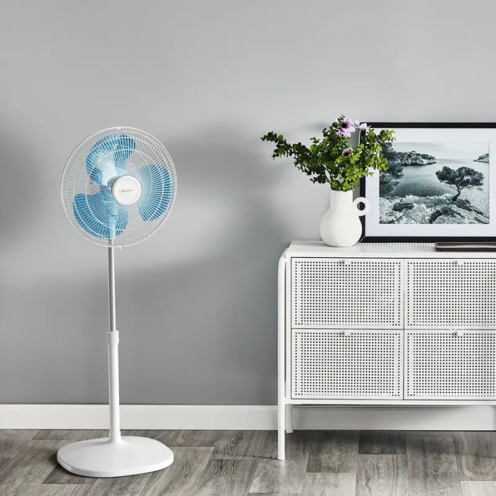 Этот компактный напольный вентилятор может также похвастаться практичной конструкцией, которая позволяет гибко настраивать его в соответствии с вашими пожеланиями. Он имеет регулируемую высоту от 90 см до 130 см, что помогает легко адаптировать его к любому пространству. Поэтому хотите ли вы использовать его в гостиной или поставить рядом с кроватью — он везде будет к месту и сможет обеспечить вам оптимальное охлаждение. Кроме того, его легко перемещать и хранить, когда он вам не нужен.