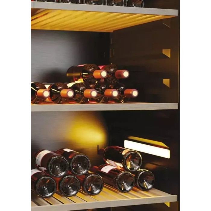 3D-светодиодное точечное освещение теплого цвета, расположенное сверху и по бокам, эффектно освещает ваши вина. Светодиоды выделяют очень мало тепла, что является залогом поддержания оптимальной температуры внутри холодильника.