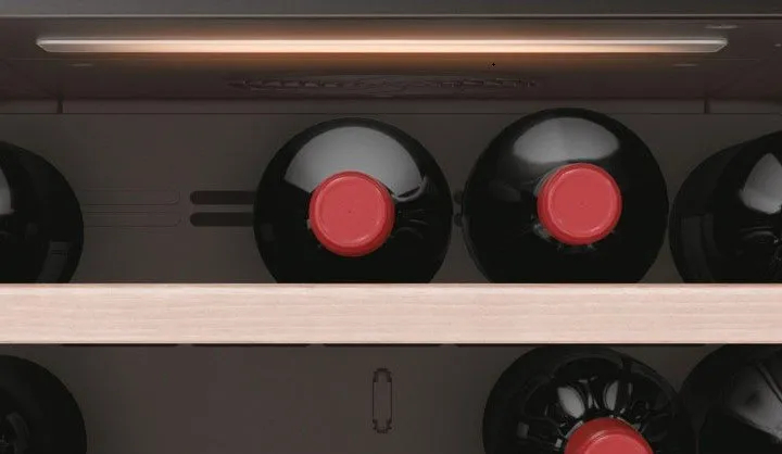 3D-светодиодное точечное освещение теплого цвета, расположенное сверху и по бокам, эффектно освещает ваши вина. Светодиоды выделяют очень мало тепла, что является залогом поддержания оптимальной температуры внутри холодильника.