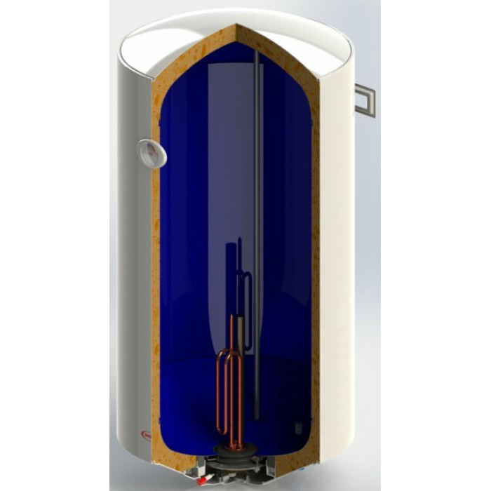 Бойлер укомплектован нагревательным элементом мощностью 1800 Вт, который отвечает за нагрев воды. Необходимо отметить, что нагрев происходит быстро за счет высокой мощности ТЭНа. Время, за которое вода достигает максимальной температуры, не более 4 часов. Диапазон температуры нагрева варьируется от 35 до 75 градусов. Необходимый уровень температуры устанавливается ручкой терморегулятора, расположенной в нижней части корпуса оборудования. По индикатору определяется активность устройства, а уровень нагрева воды по термометру. Важной особенностью данной модели является высокая эффективность теплоизоляции из экологически чистого материала – пенополиуретана. Это снижает тепловые потери бойлера, а, в следствии, экономит электроэнергию.
