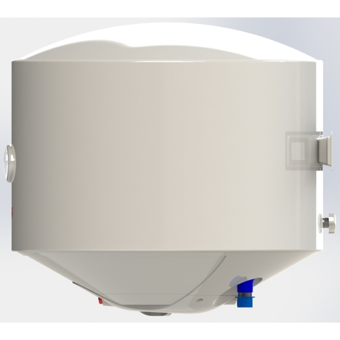 Заметным достоинством бойлера являются его габариты, высота равняется 456 мм, диаметр 460 мм, что позволяет сэкономить место. Устройство имеет емкость 35 литров Такой небольшой объем воды очень быстро нагревается мощным ТЭНом до максимальной температуры 75 градусов. Управлять уровнем нагрева воды можно благодаря удобно расположенной ручке терморегулятора.