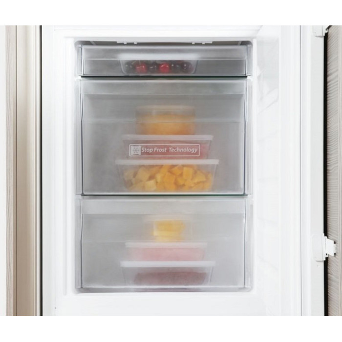 Технологія Stop Frost дає змогу легко відчиняти, зачиняти та виймати продукти з ящиків. Для розморожування просто зніміть спеціальний піддон для льоду з верхньої частини морозильної камери та промивайте її під проточною водою протягом 1 хвилини один раз на місяць.