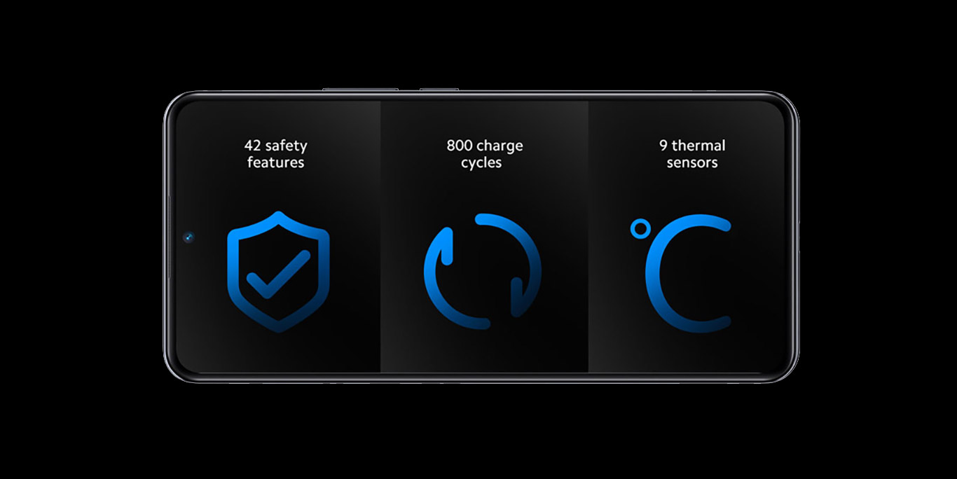 Тонкая батарея с высокой плотностью энергии и энергоэффективный процессор нового поколения позволяют Xiaomi 12T Pro показывать отличную автономность. А технология HyperCharge мощностью 120 Вт обеспечит просто молниеносную скорость зарядки и поможет сэкономить ваше время, когда это так необходимо. 42 защитные функции и 9 термосенсоров, контролирующих состояние всего телефона, гарантируют долгую и надежную работу. А еще – до 800 циклов зарядки.