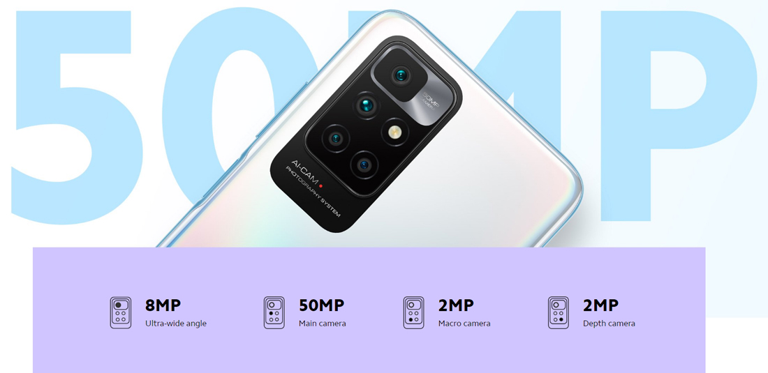 Квадрокамера Redmi 10 с искусственным интеллектом отлично приспособлена для любых сценариев съемки, будь то аппетитное блюдо в ресторане или поражающие воображение горные пейзажи. Главный модуль со сверхвысоким разрешением 50 Мп позволит рассмотреть все в деталях, а три дополнительных объектива помогут сосредоточиться на различных нюансах. Просто наведите камеру на то, что вам понравилось и фотографируйте в свое удовольствие.